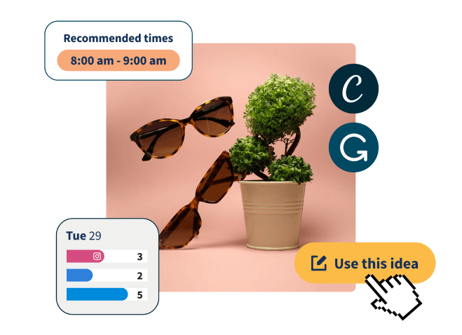 Réduisez votre semaine de travail de moitié grâce aux meilleurs outils de création de contenu du secteur. Faites-le rapidement grâce aux modèles Canva intégrés, à un rédacteur de légendes basé sur l'IA et à des flux pour découvrir le meilleur contenu à partager.